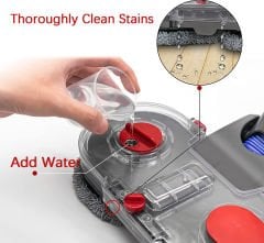 Ürün içeriği: Dyson Vakumlu Su Deposu Ve Paspas Aparatı (Damlatmalı) 4 Paspas, Tetik Kilidi ve Su haznesi ile birlikte gönderilmektedir.